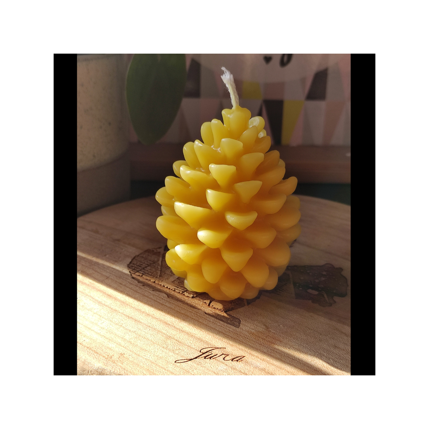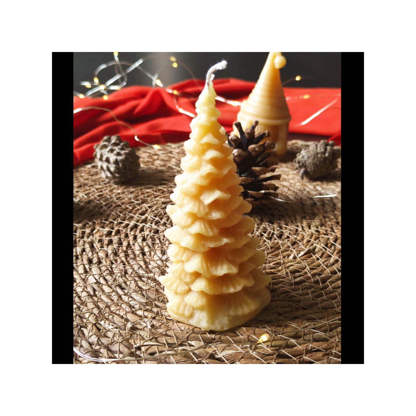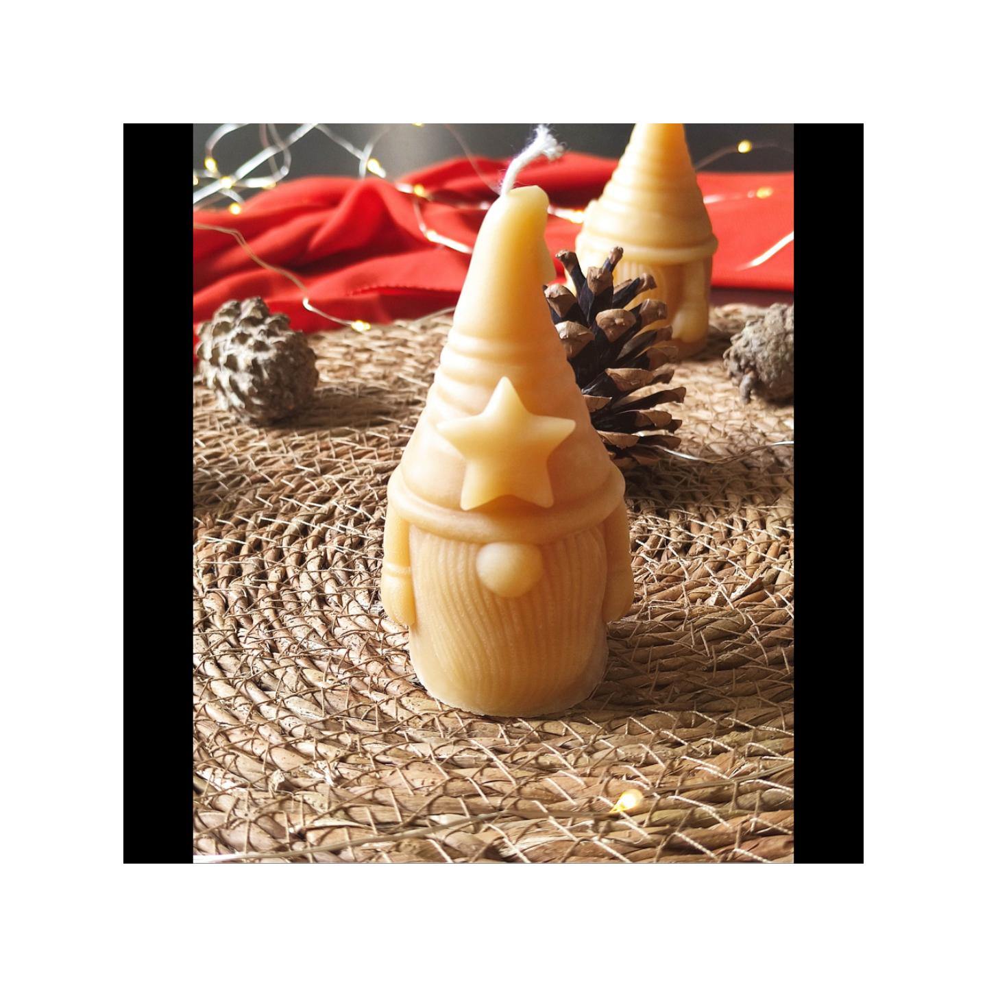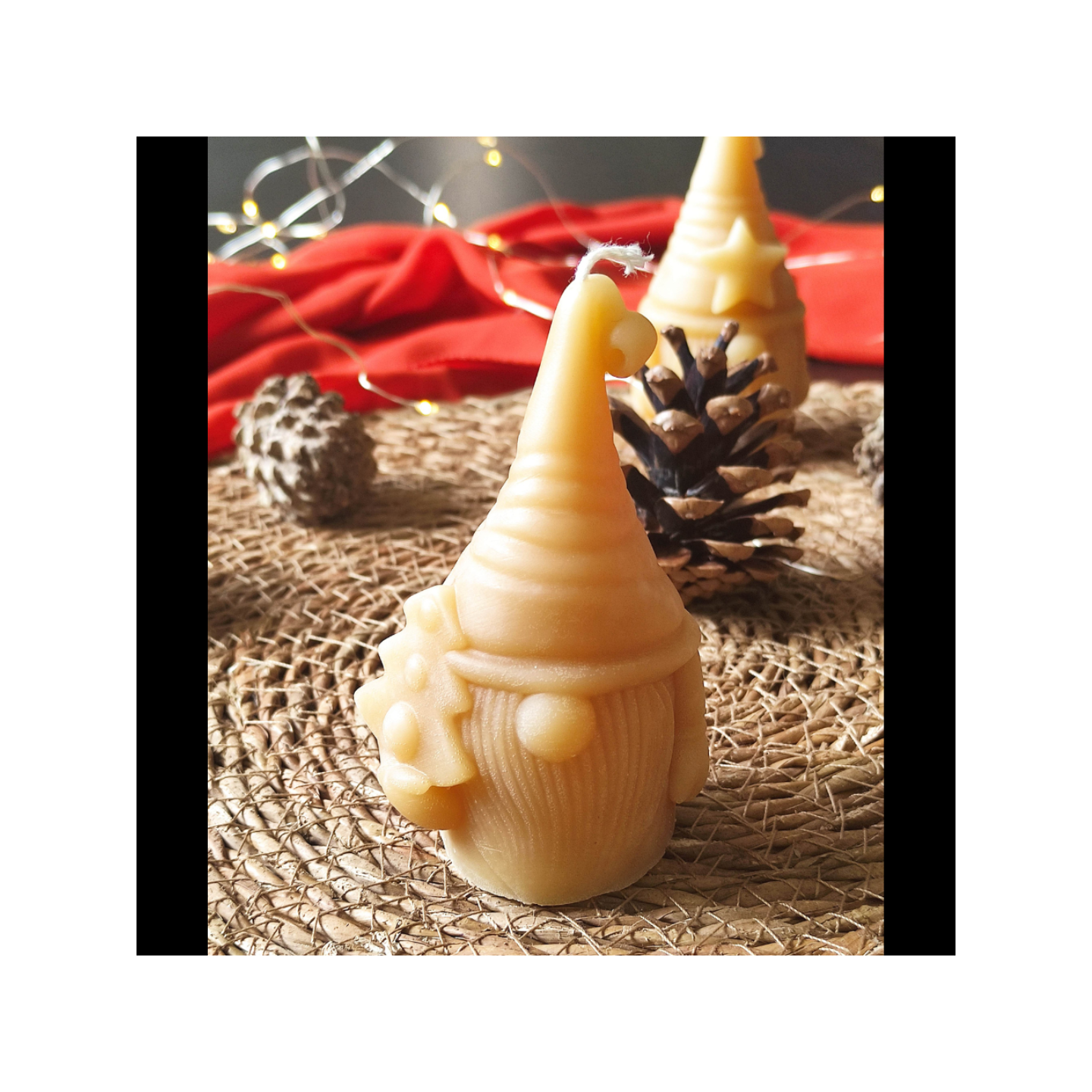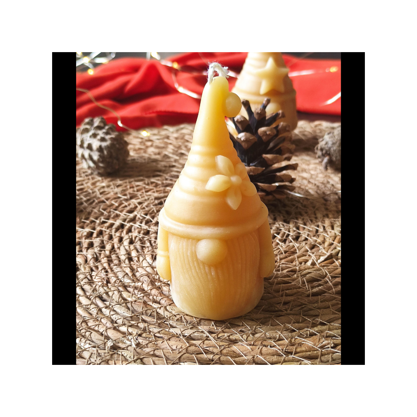 La cire d'abeille utilisée pour la fabrication de ces bougies est française et issue des ruches de notre exploitation familiale jurassienne. Les bougies en cire d'abeille sont fabriquées à la main par nos soins dans notre miellerie. Lorsque le miel est extrait des hausses, la cire fabriquée par les abeilles qui servait à refermer les alvéoles est récupérée afin d'être ré-utilisée pour l'apiculture et pour la fabrication de nos bougies. La conception délicate de ces figurines est réalisée par moulage par nos soins.