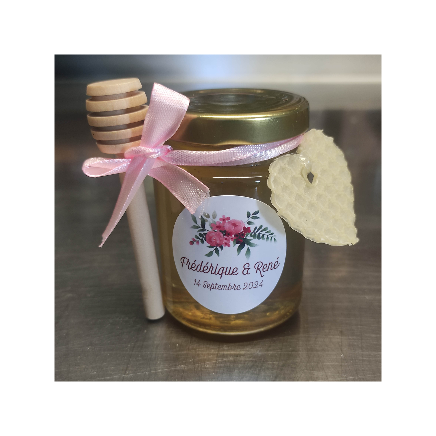 Choisissez votre type de miel parmi nos récoltes, personnalisez votre étiquette aux couleurs de votre mariage et sélectionnez des accessoires originaux pour créer un petit pot de miel à votre image. Les miels sont mis en pot à la réception de votre commande pour assurer une qualité optimum pour votre mariage. Commandes urgentes possibles sur demande.